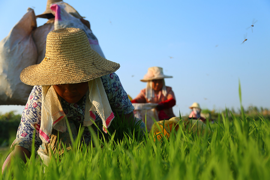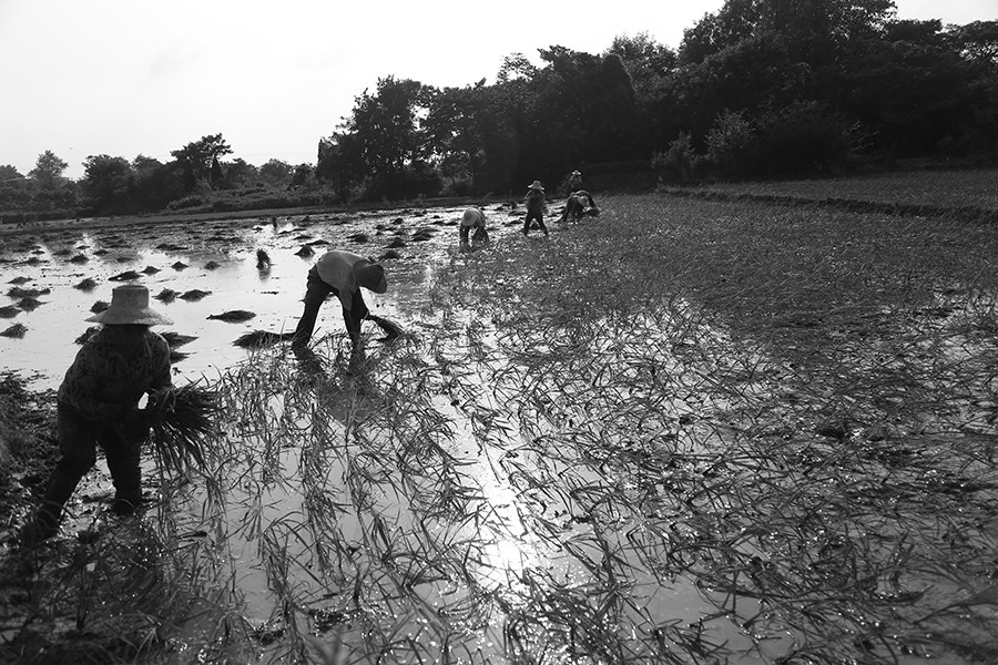 烈日下的拔秧者