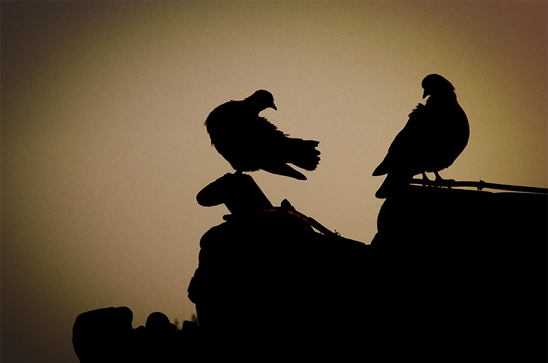 夕阳下的深情对望